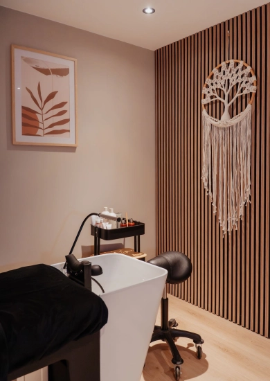 Een complete wellnesservaring met hoofdhuidanalyse, reiniging, scrub, detox, massage, masker en stoomsessie. Daarna knippen en föhnen we het haar tot in perfectie.