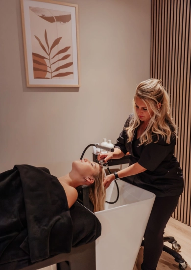 De Sensitive Treatment is ideaal voor mensen met een gevoelige hoofdhuid of haar- en hoofdhuidproblemen. De behandeling begint met een analyse van de hoofdhuid en het haar, gevolgd door een gepersonaliseerde behandeling. Dit omvat een hoofdhuidreiniging met een scrub en detox, een uitgebreide ontspannende hoofd-, nek-, en schoudermassage, een voedend hoofd- en haarmasker, een stoomsessie en ten slotte het föhnen van het haar.
